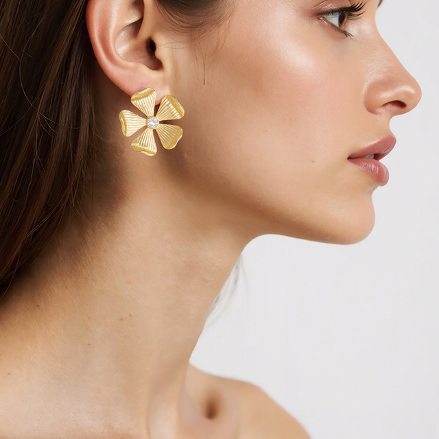 14K Gold Plated Ear Stud Piercing Metal Earring Jewelry In Stainless Steel Material